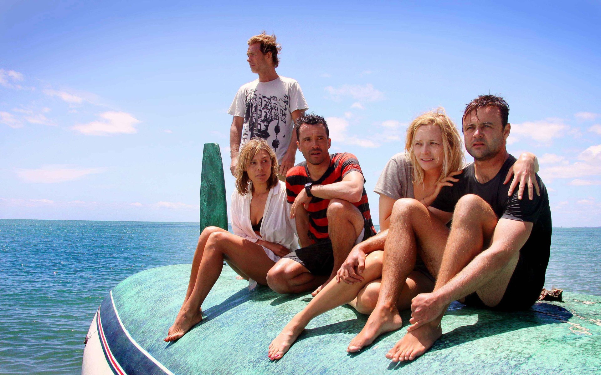 Katrina Bowden, Aaron Jakubenko, and Tim Kano star in Great White as they find themselves trapped in a nightmarish situation when their seaplane gets marooned at sea.